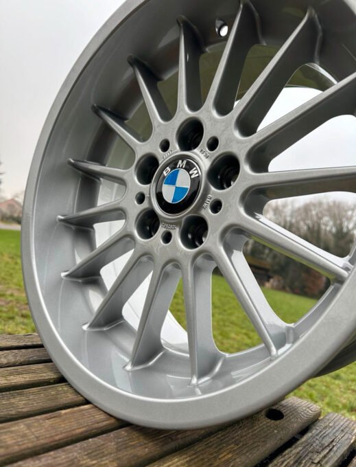 Les jantes sont fraîchement rénovées et bénéficient d’un revêtement en poudre en 3 couches d’argent métallisé, assurant un éclat durable. De plus, de nouveaux enjoliveurs complètent leur allure, conférant à votre BMW un charme inégalé.